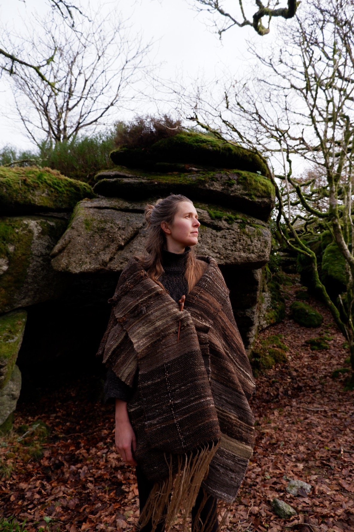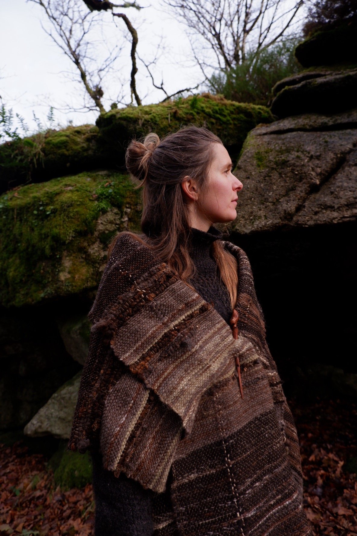 I wanted to celebrate the turning of the season, and the illumination of the lichen, peat, browns and fading greens present in the depths of Autumns grasp. It feels as though the spirits of this place wanted to be seen and alchemised into a strong, soft and radiant cloth.