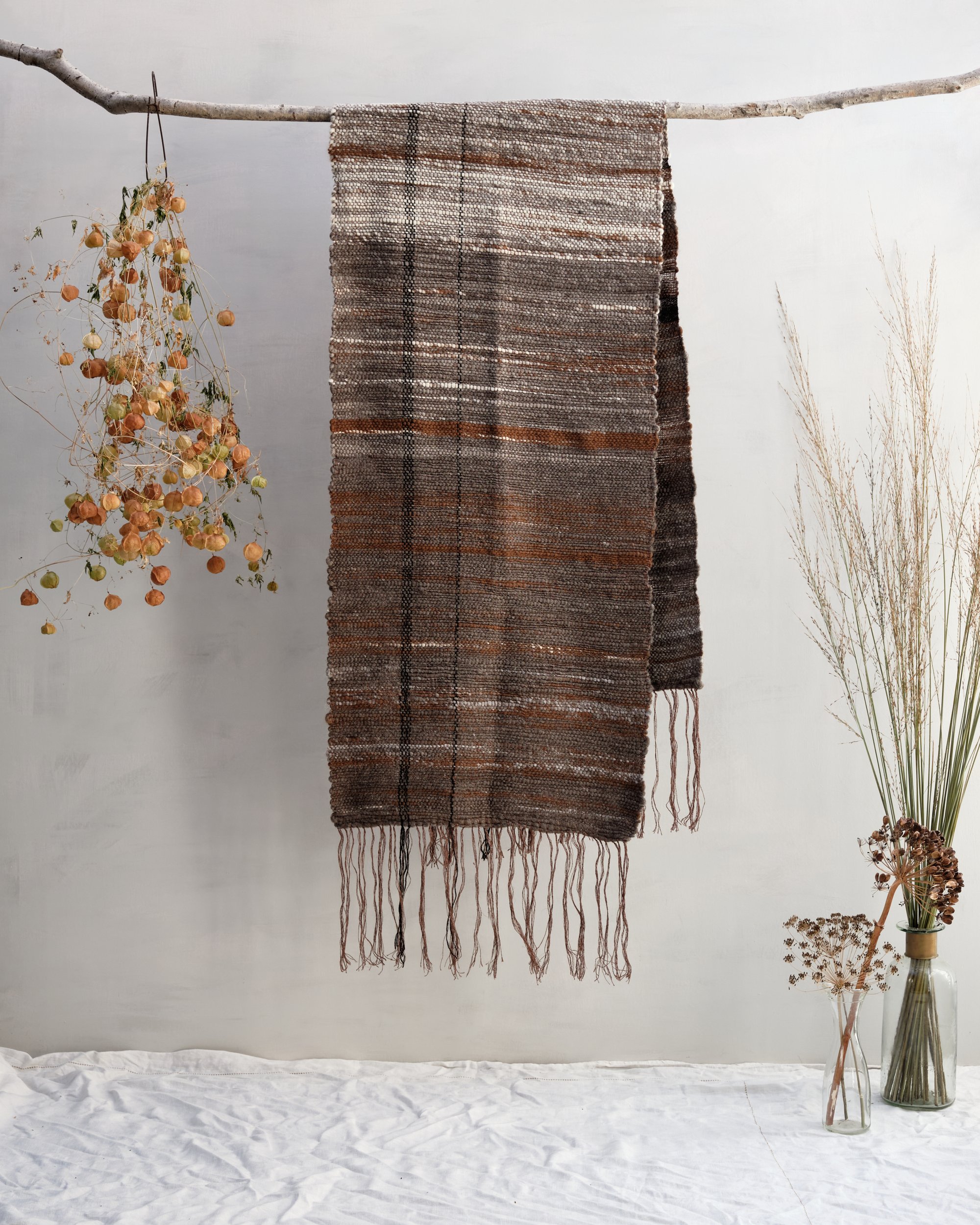 Oak and peat browns, with fox reds and heron greys, cloud hues and golden haze, Ember is a celebration of the Earth, the fires and the abundant beauty in natural fibres.