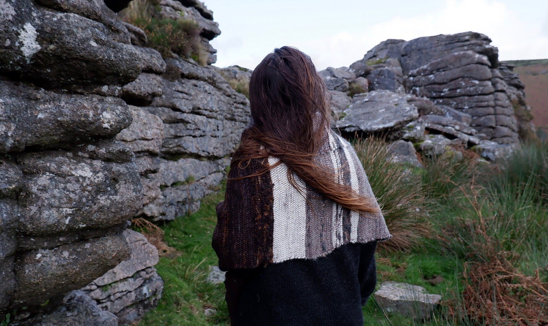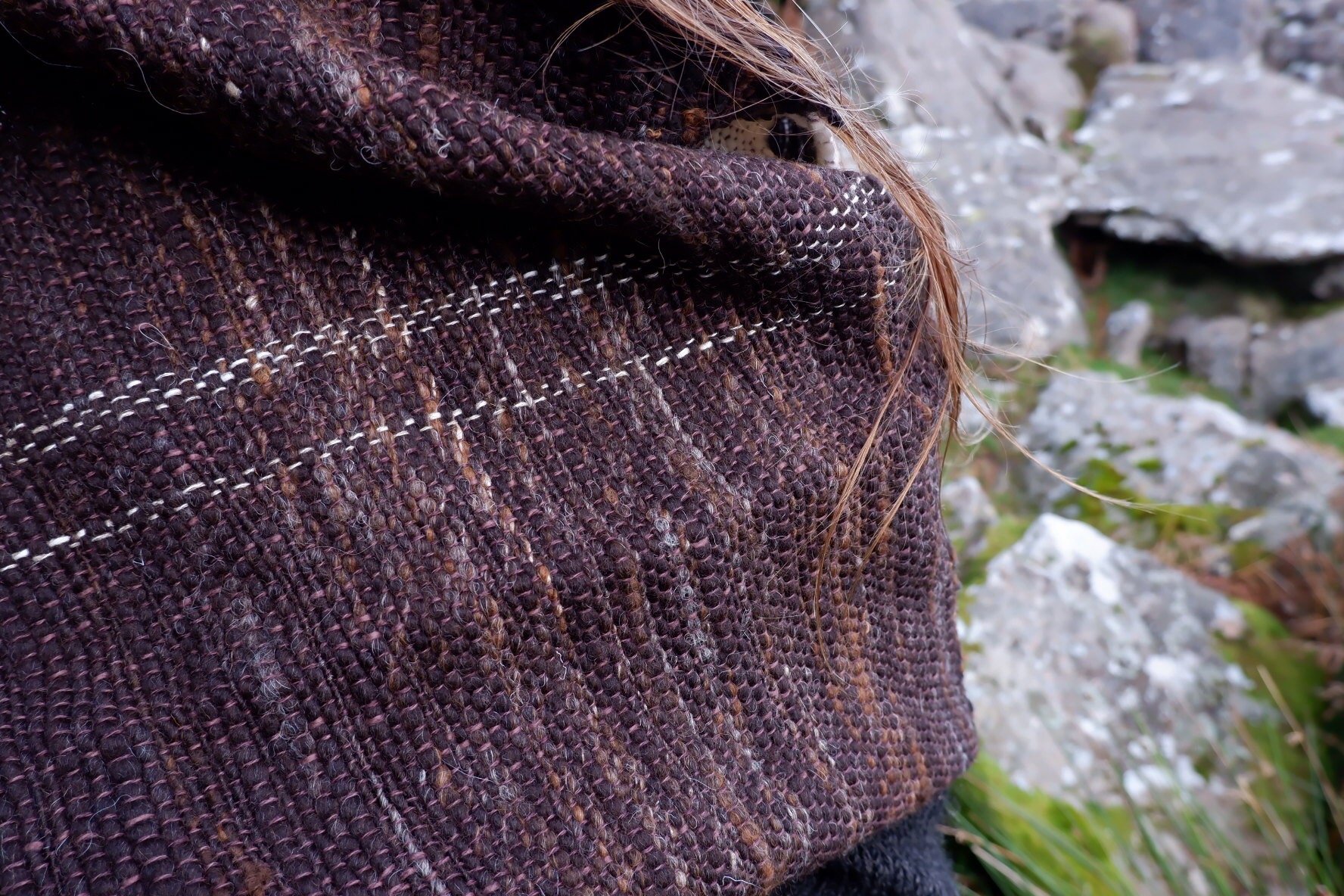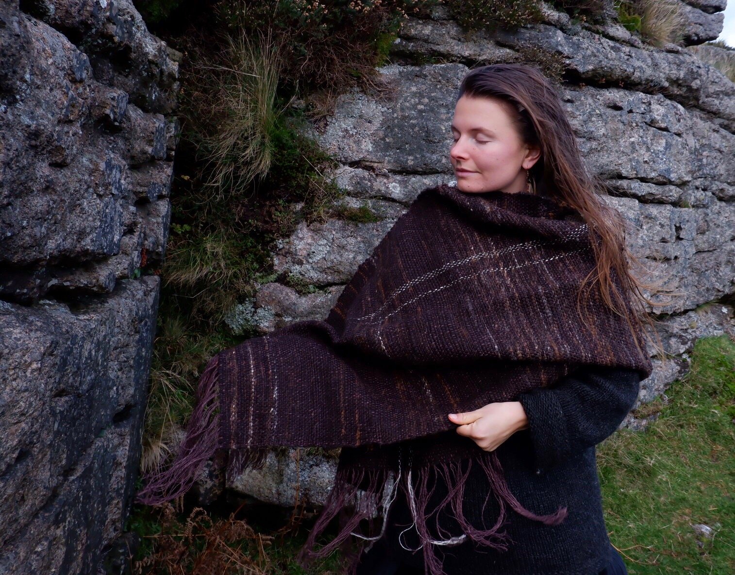 I have hand spun and woven a blend of local and British wools, Alpaca, wild harvested Muga silk, linen and a tiny thread of Devon Lichen.