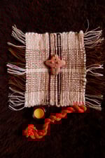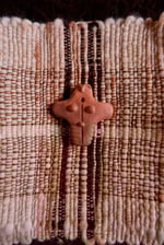 This is the fourth Altar cloth to arrive as part of a one-of-a-kind ritual set offering and is much smaller than the other three. ‘Rose light’ is a humble cloth and was woven using my hand spun wools, alpacas, wild silks and speciality local Dartmoor threads. It is a cloth upon which to place pieces of significance, and a space through which to offer holding to prayer, wishes, intention and meaning-making.