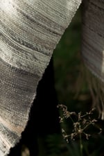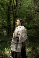 This shawl marries soft uk Alpaca fleece, wild harvested muga and penduncle silk, a cotton and linen warp thread and the soft folds of locally milled wools.