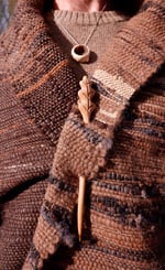 My partner Jules forages, carves and tends into being beautiful shawl pins.
