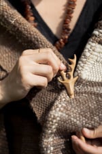 He often uses oak and other woods found in local Devon forests or around our cabin home and each pin is entirely bespoke and imbued with old magic.