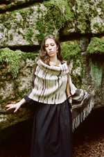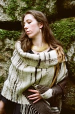 This textile aims to cocoon its Wearer as they traverse the varied Landscapes of a Life. Each thread has been spun to offer unconditional holding, warmth and comfort. Every line of yarn woven holds the prayer to honour the Wearers many moments of transformation. It seeks to wrap you in alchemy, to hold you in the bright womb of potential.